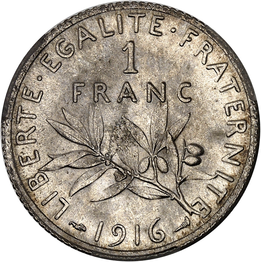 IIIe République (1870-1940). 1 franc Semeuse 1916, Paris.