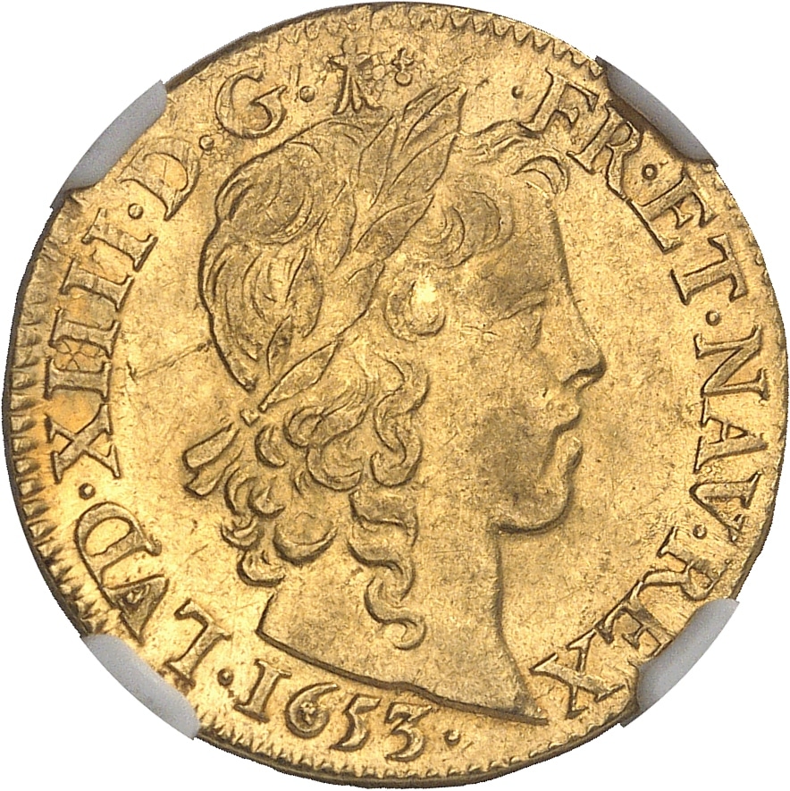 Louis XIV (1643-1715). Louis d’or à la mèche longue 1653, X, Amiens.