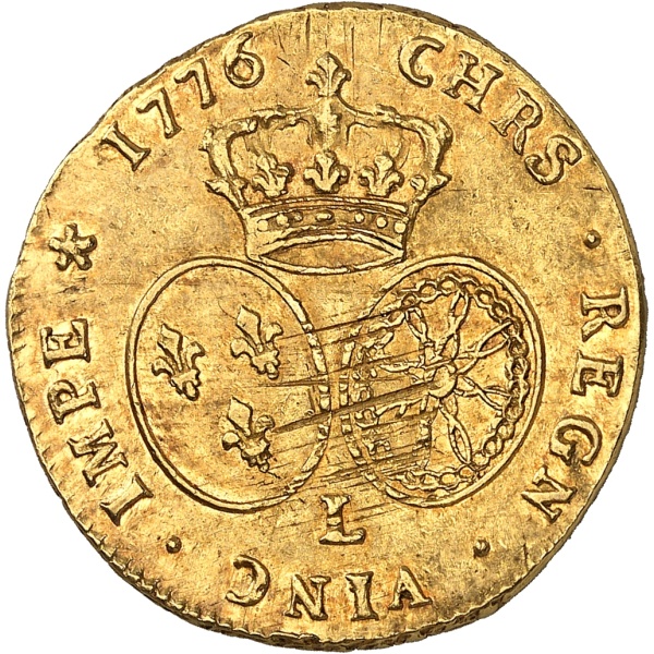 Louis XVI (1774-1792). Double louis d’or aux lunettes 1776, L, Bayonne.