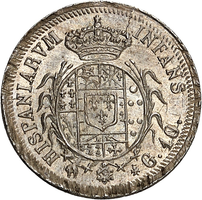Rv. HISPANIARUM - INFANS. Entre deux roseaux, écu couronné ; au-dessous G. 10.