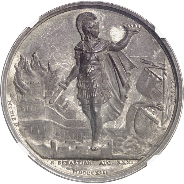Georges III (1760-1820). Médaille, Prise de Saint-Sébastien, lieutenant-général Lord Lynedoch, par Webb et Mills chez James Mudie 1813, Londres.