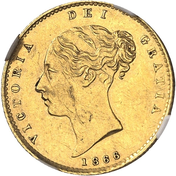 Victoria (1837-1901). Demi-souverain, coin #13 1866, Londres.