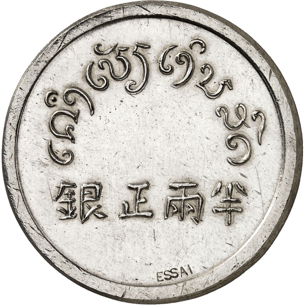 État Français (1940-1944). Essai du 1/2 taël (1/2 lang ou 1/2 bya) au caractère Phù, tranche lisse, par R. Mercier ND (1943), Hanoï.