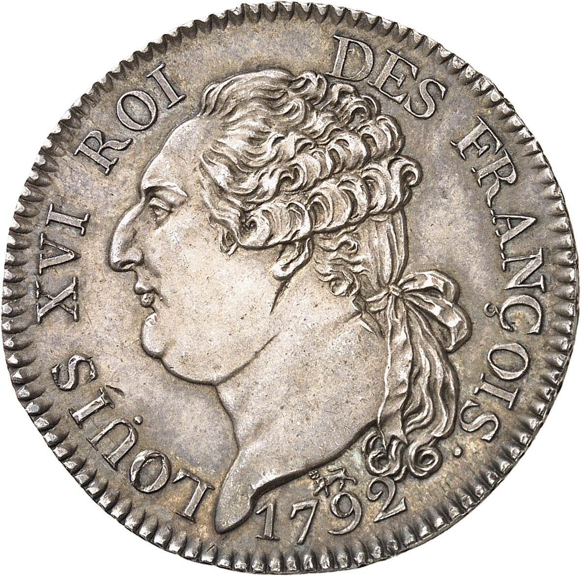 Av. LOUIS XVI ROI DES FRANÇOIS. Tête à gauche du Roi, les cheveux noués par un ruban sur la nuque. Au-dessous (date).
