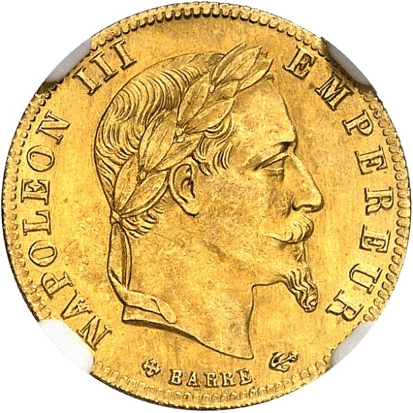 Rv. EMPIRE FRANÇAIS. Dans une couronne formée de deux branches : 5 FRANCS (date) et au-dessous (atelier).
