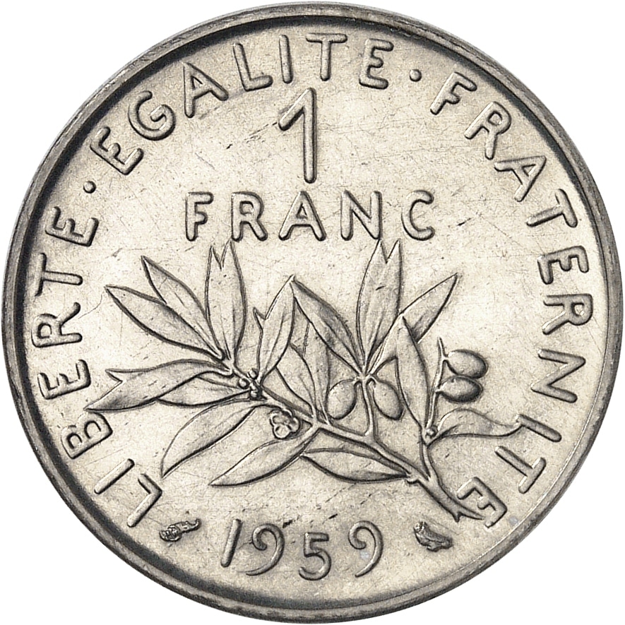 Ve République (1958 à nos jours). Essai-piéfort de 1 franc Semeuse 1959, Paris.