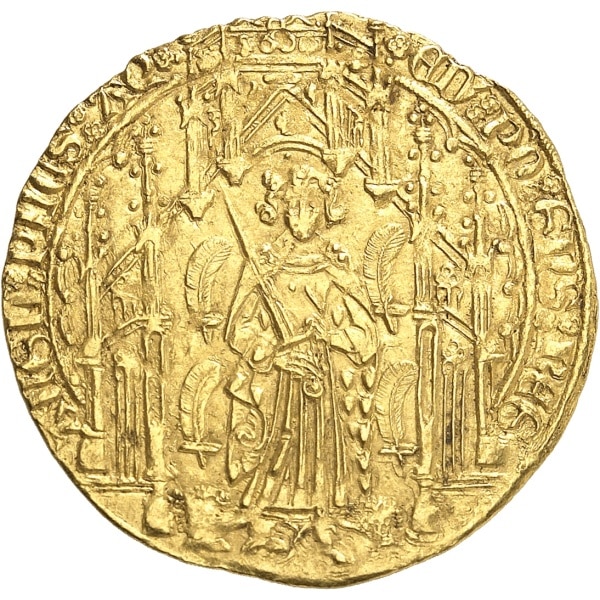 Aquitaine, Édouard IV, le Prince Noir (1362-1372). Pavillon d’or ou noble guyennois à l’E, 2e émission ND (1366-1368), B, Bordeaux.