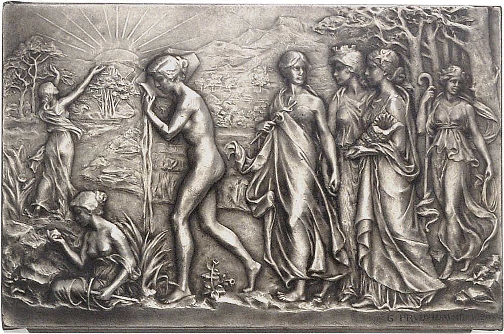 Av. Les sciences représentées au congrès, dans un paysage ; signature G. PRVD'HOMME 1920.