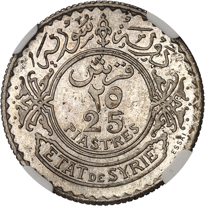 Mandat français (1920-1946). Essai de 25 piastres, Frappe spéciale (SP) 1929, Paris.
