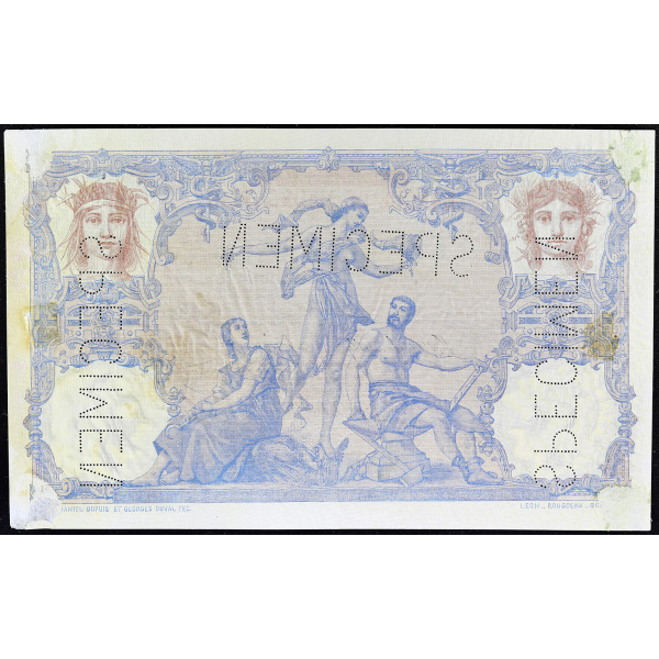Alphabet X.191 - numéro 034, avec signature et une triple perforation “SPECIMEN” de manière verticale à droite et à gauche du billet mais aussi au centre de manière horizontale. Il est fréquent que pour certains types ou certains pays des billets coursables soient utilisés pour servir de SPECIMEN pour les banques. Par ailleurs, ce type est tout simplement rarissime : aucune archive de vente, jamais présenté lors d’une vente aux enchères et aucun billet référencé dans la base de population PMG à ce jour.