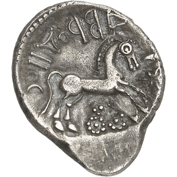 - CELTIC Suessions. Denier NIdE-AΛABROΔIIOC, classe I ND (c.60-50 av. J.-C.).