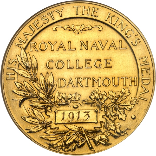 Rv. HIS MAJESTY YHE KING’S MEDAL. Au centre : ROYAL NAVAL COLLEGE DARTMOUTH au-dessus de branches de laurier et de chêne avec cartouche.
