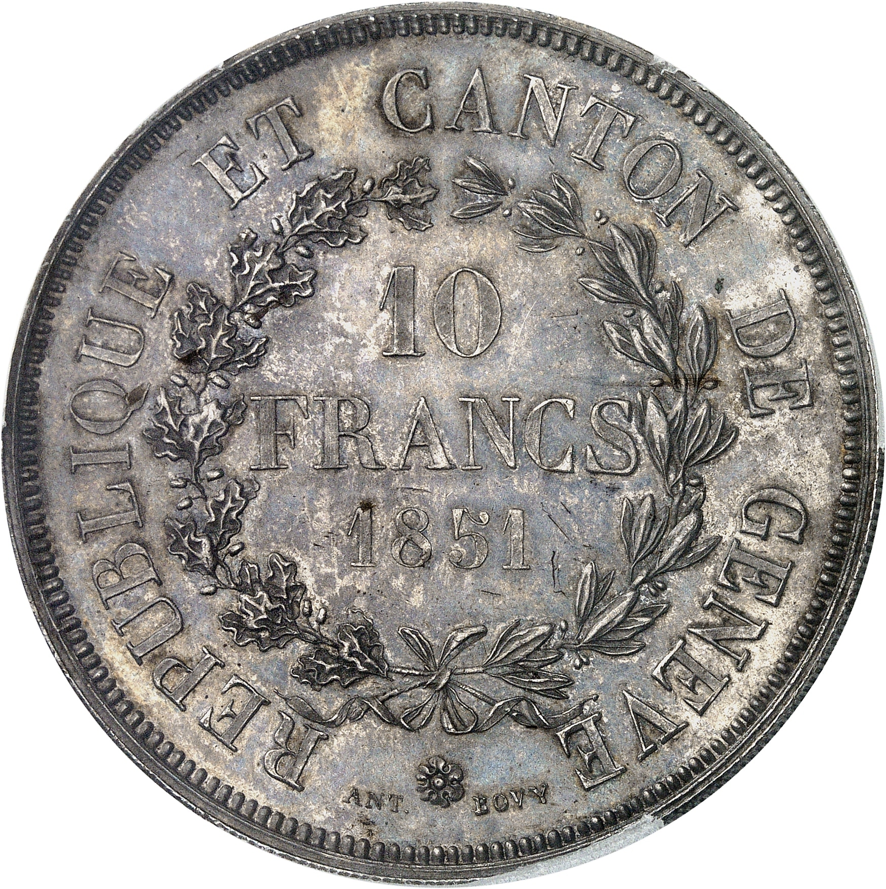 - SWITZERLAND Genève (canton de). 10 francs (schützentaler) 1851, Genève.