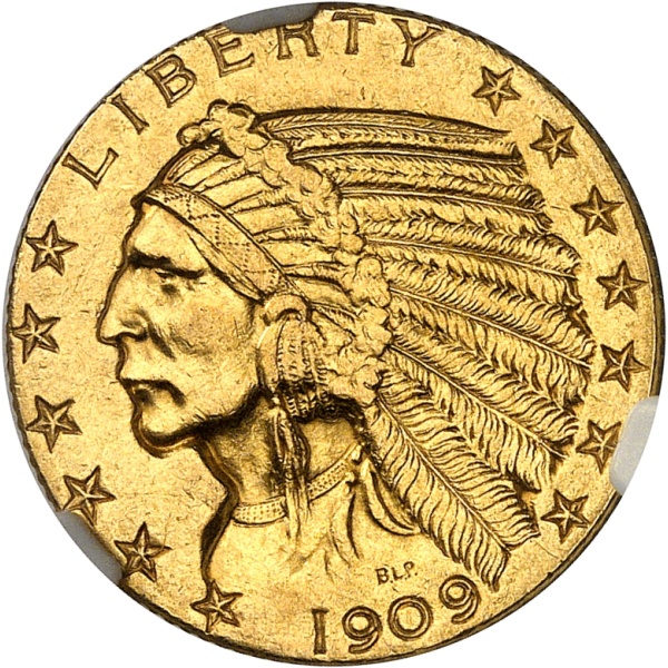 - UNITED STATES OF AMERICA République fédérale des États-Unis d’Amérique (1776-à nos jours). 5 dollars Indien 1909, O, La Nouvelle-Orléans.