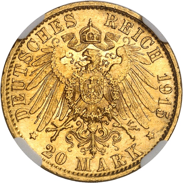 - GERMANY Prusse, Guillaume II (1888-1918). 20 mark 1915, A, Berlin.