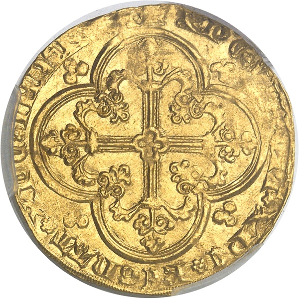 Rv. + XPC* VINCIT* XPC* REGNAT* XPC* IMPERAT. Croix feuillue avec quadrilobe en cœur, dans un petit quadrilobe anglé, orné de palmettes et cantonné de quatre trèfles évidés.