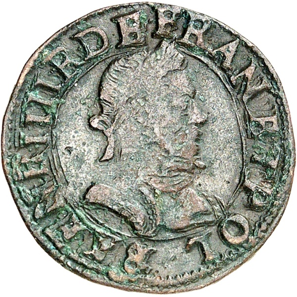 Av. HENRI. III. R. DE. FRAN. ET. POL. Buste lauré et cuirassé à droite ; au-dessous, (atelier).