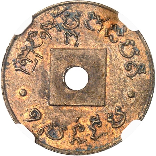 - CAMBODIA Norodom Ier (1860-1904). 1 centime, épreuve avec petit trou rond ND (1888).