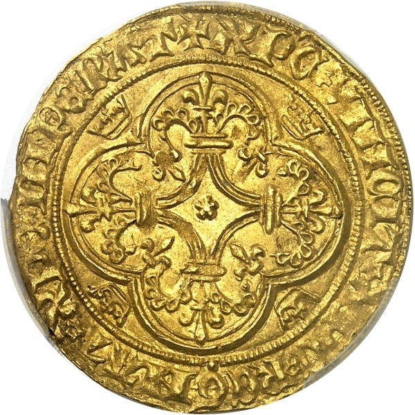 Rv. + XPC* VINCIT* XPC* REGNAT* XPC* INPERAT. Croix fleurdelisée et feuillue, avec étoile dans un losange curviligne en cœur, le tout dans un quadrilobe cantonné de quatre couronnelles.