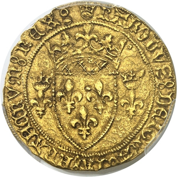 - FRANCE / ROYAL Charles VII (1422-1461). Écu d’or à la couronne 3e type, ou écu neuf, 6e émission ND (1450-1461), Montpellier.