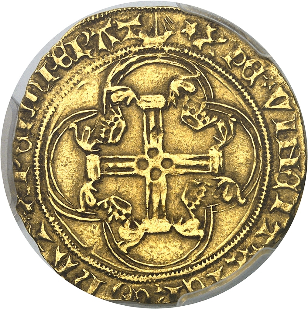 - FRANCE / ROYAL Charles VII (1422-1461). Écu d’or à la couronne 3e type, ou écu neuf, 7e émission ND (1455-1461), Bordeaux.