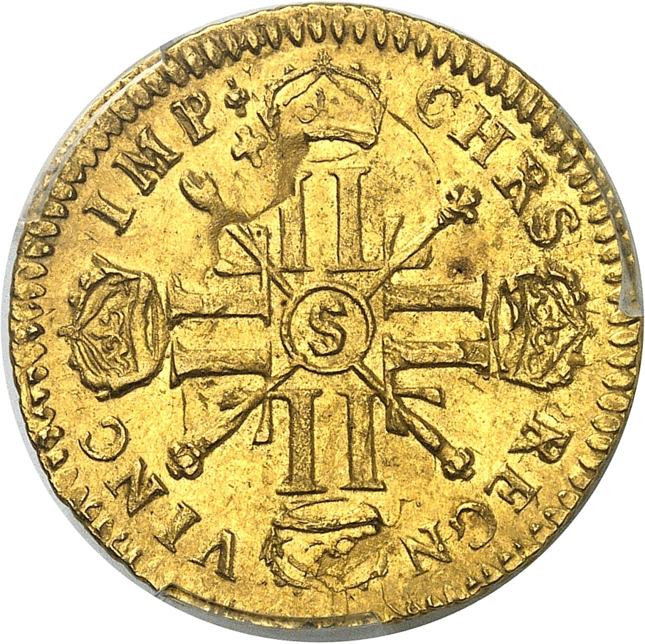 - FRANCE / ROYAL Louis XIV (1643-1715). Louis aux huit L et aux insignes, réformation 1702, S, Reims.