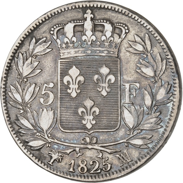 - Charles X (1824-1830). 5 francs, 1er type 1825, MA, Marseille.