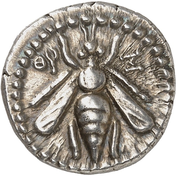 Av. ΘΥ - [Σ]. Abeille vue du dessus, dans un gros grènetis.