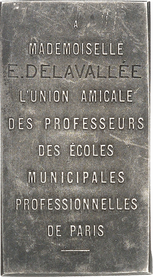 Rv. A / MADEMOISELLE / (attribution) / L’UNION AMICALE / DES PROFESSEURS / DES ÉCOLES / MUNICIPALES / PROFESSIONNELLES / DE PARIS.