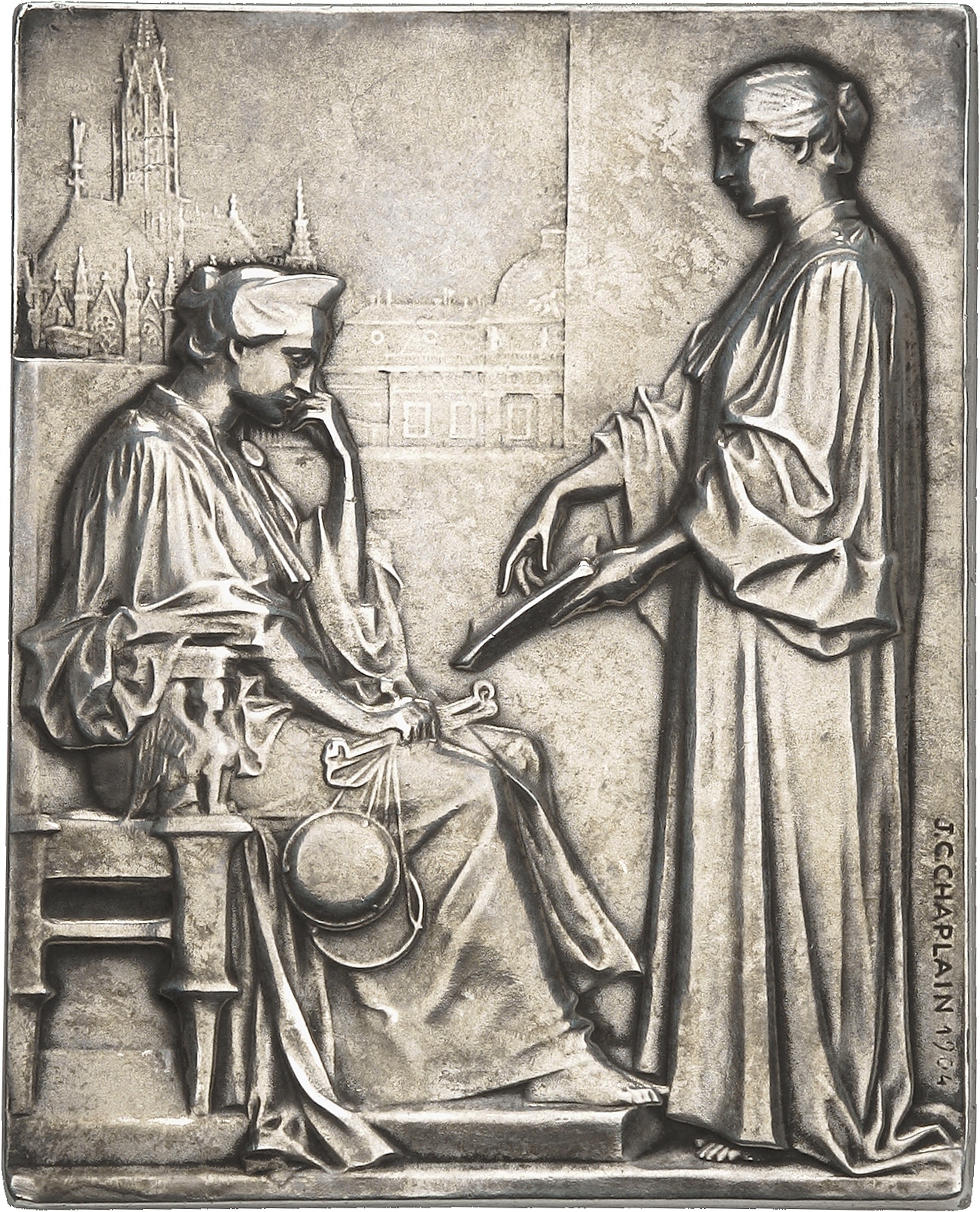 - IIIe République (1870-1940). Médaille, avoués près la Cour d’appel de Paris, par J.-C. Chaplain 1904, Paris.