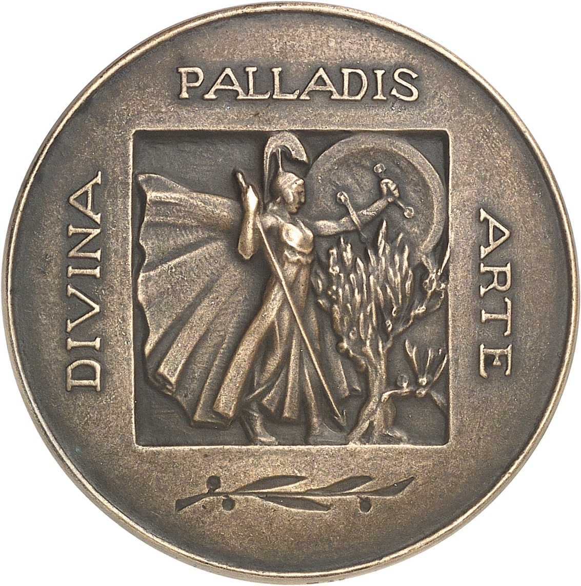 Rv. DIVINA PALLADIS ARTE. Minerve armée et protégeant les arts ; au-dessous, une branche d’olivier.