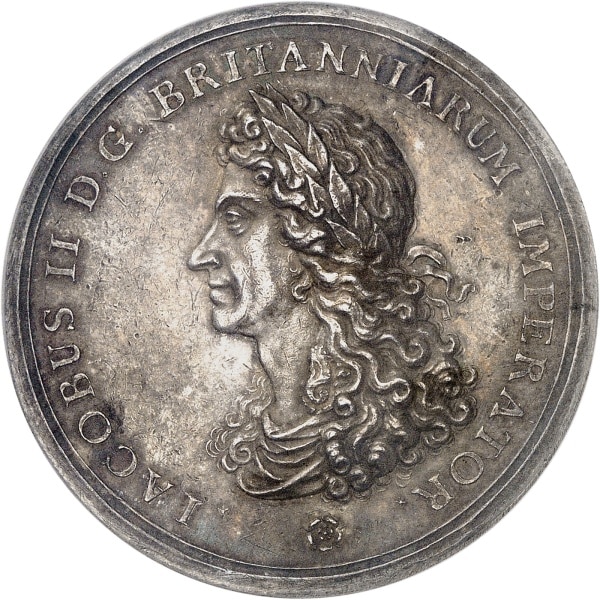 - UNITED KINGDOM Jacques II (1685-1688). Médaille en argent, arrivée de Jacques II en France, par Johannes Smeltzing 1689, Leiden.