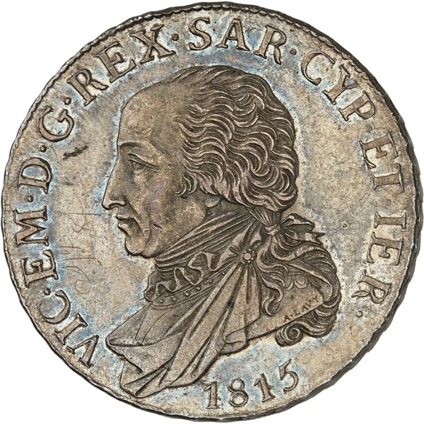- ITALY Savoie-Sardaigne, Victor-Emmanuel Ier (1814-1821). Demi-écu (mezzo scudo), 1er type 1815, Turin.