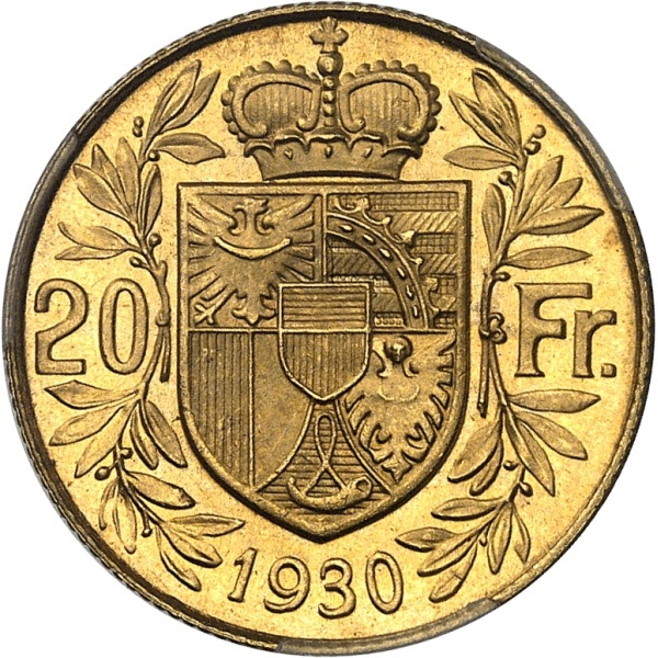 - François Ier (1929-1938). 20 franken 1930, Berne.