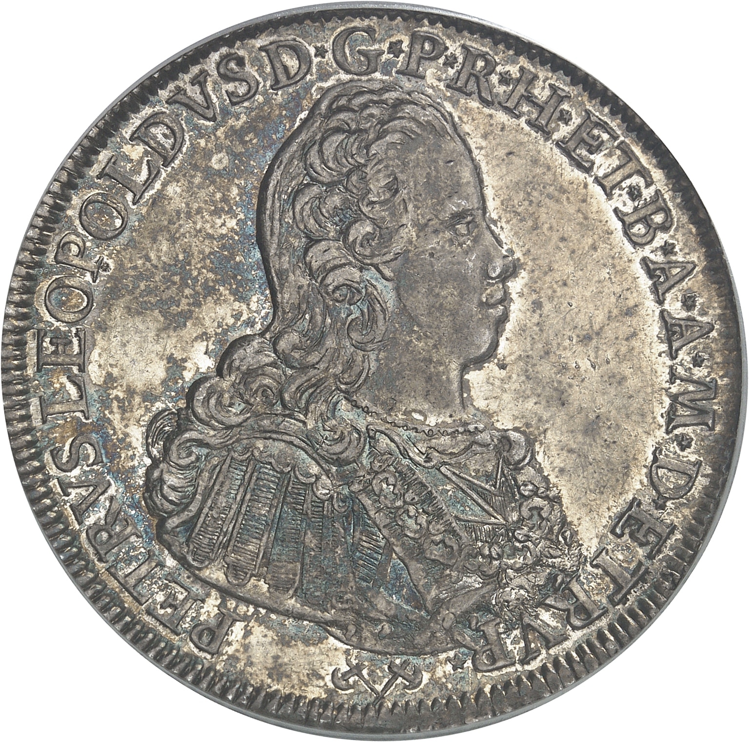 Av. PETRVS LEOPOLDVS D* G* P* R* H* ET* B* A* A* M* D* ETRVR*. Buste cuirassé à droite avec les colliers de la Toison d’or et de Saint Étienne. Au-dessous (différent).