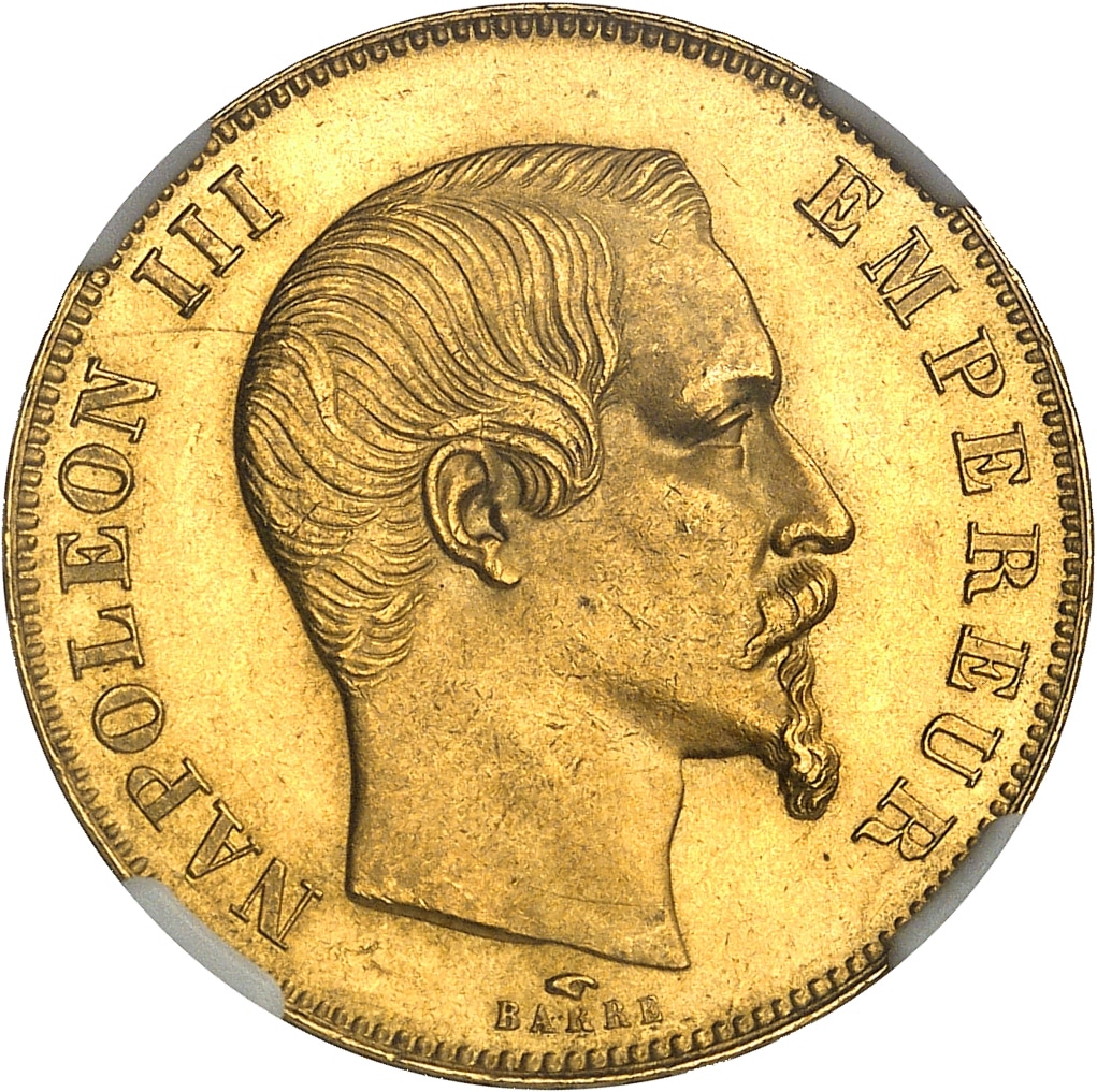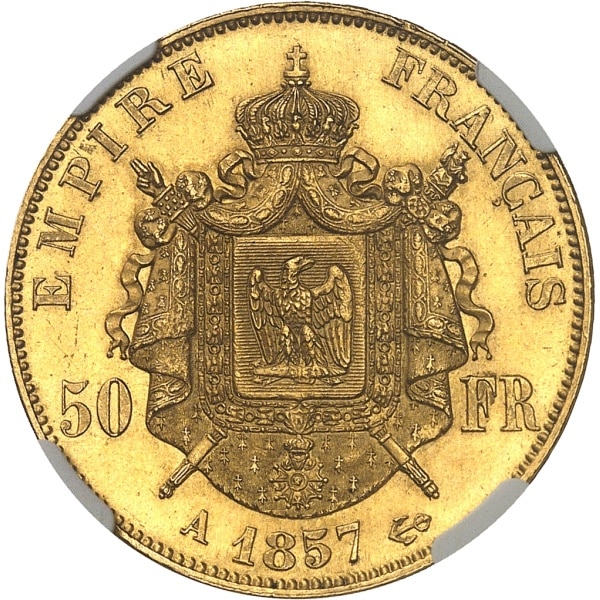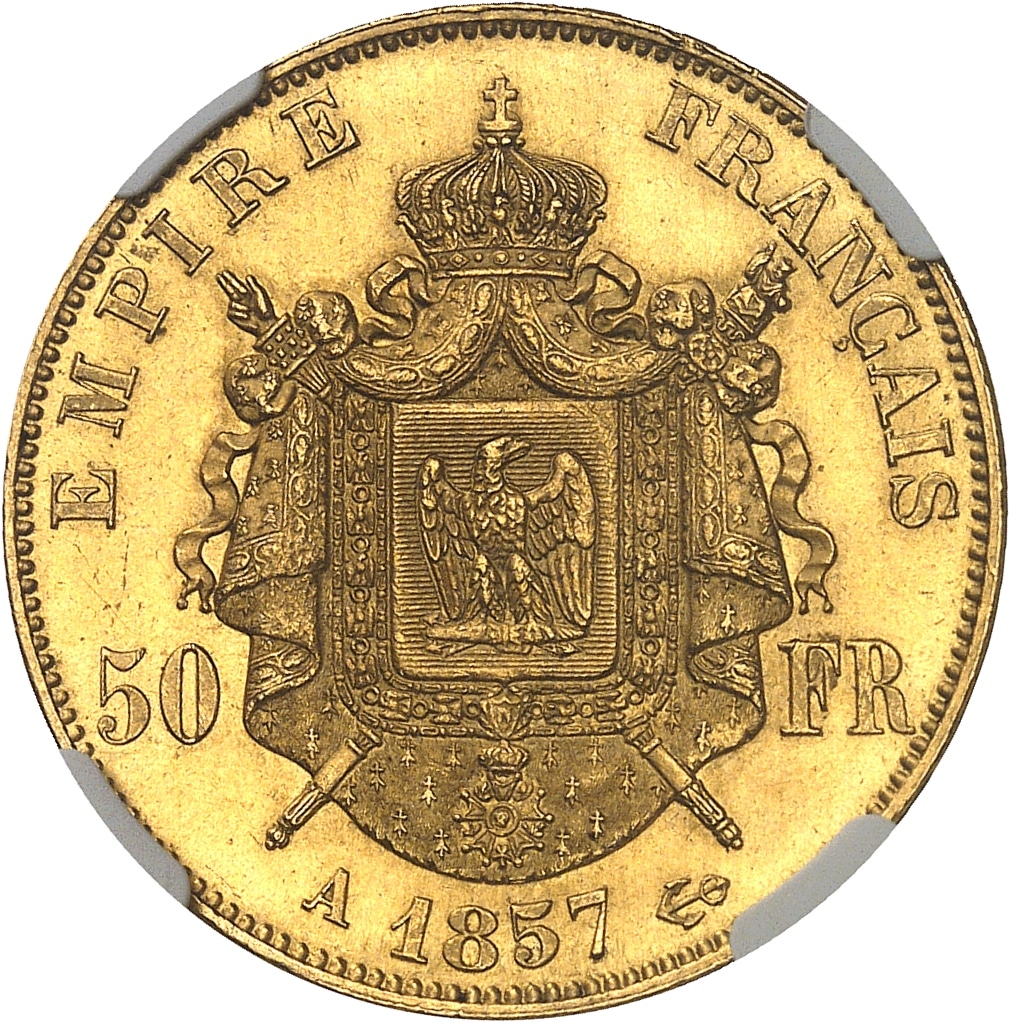 - Second Empire / Napoléon III (1852-1870). 50 francs tête nue 1857, A, Paris.