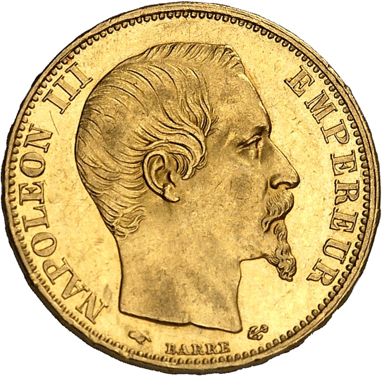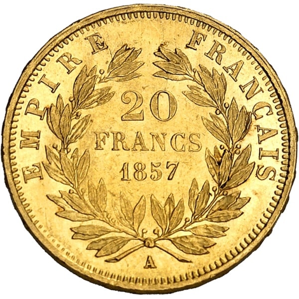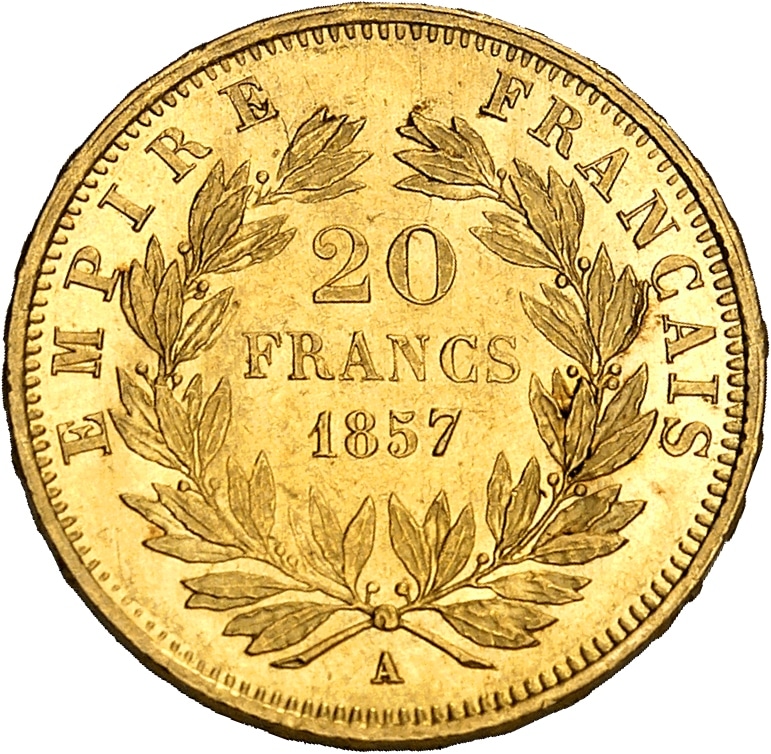 - Second Empire / Napoléon III (1852-1870). 20 francs tête nue 1857, A, Paris.