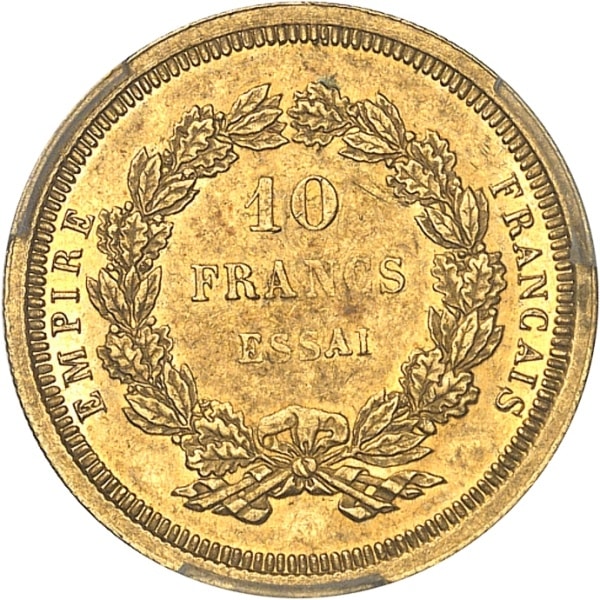 Rv. EMPIRE - FRANÇAIS. Dans une couronne formée de deux branches : 10 / FRANCS / ESSAI.