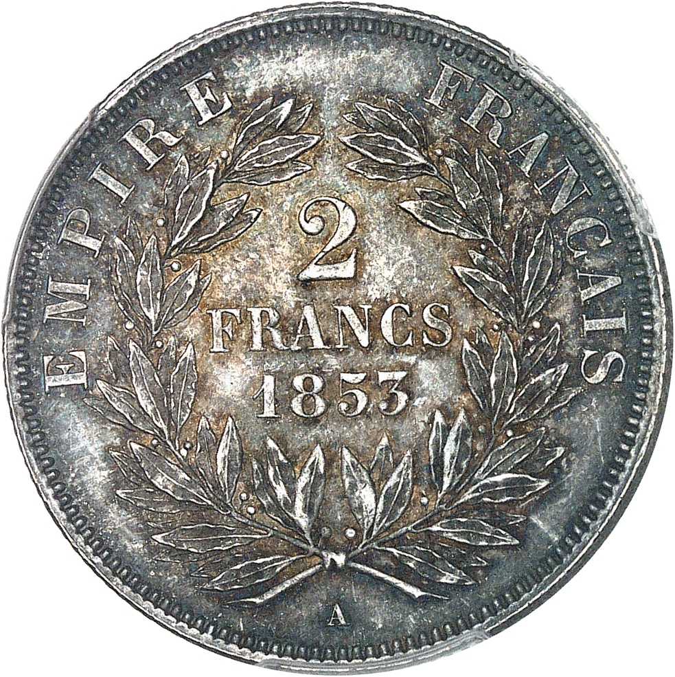 - Second Empire / Napoléon III (1852-1870). 2 francs tête nue 1853, A, Paris.
