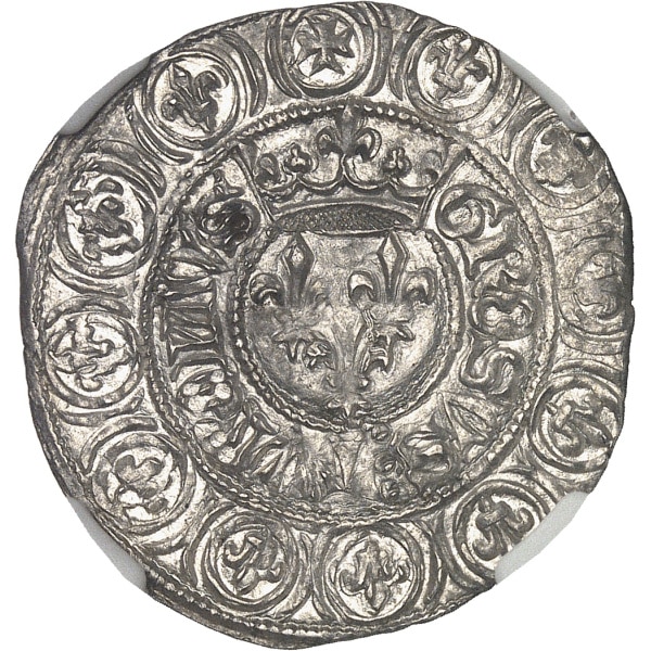 - FRANCE / ROYAL Charles VI (1380-1422). Gros aux lis sous une couronne ND (3 novembre 1413), Rouen.