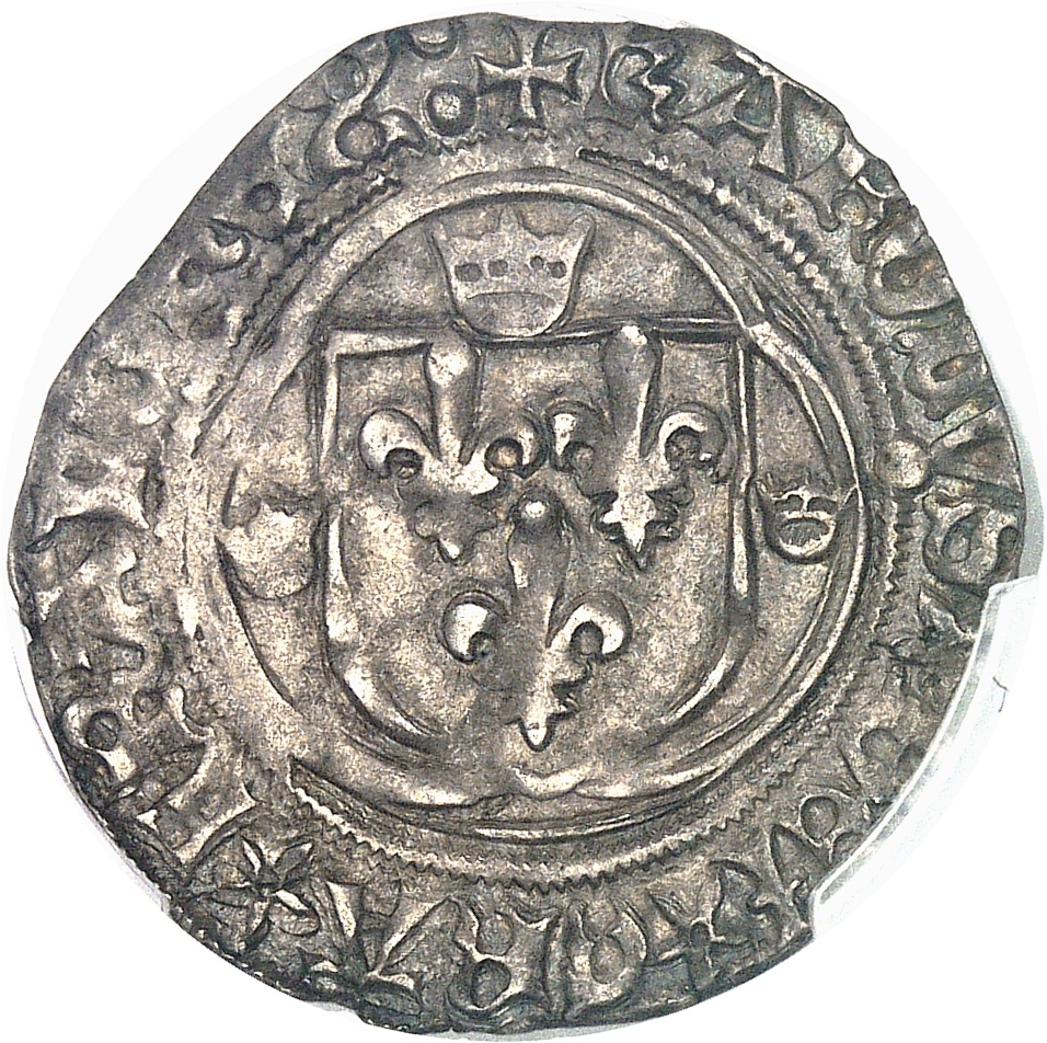 - FRANCE / ROYAL Charles VIII (1483-1498). Blanc à la couronne, 1er type, variété de légende longue avec DEI GRA ND, Tours.
