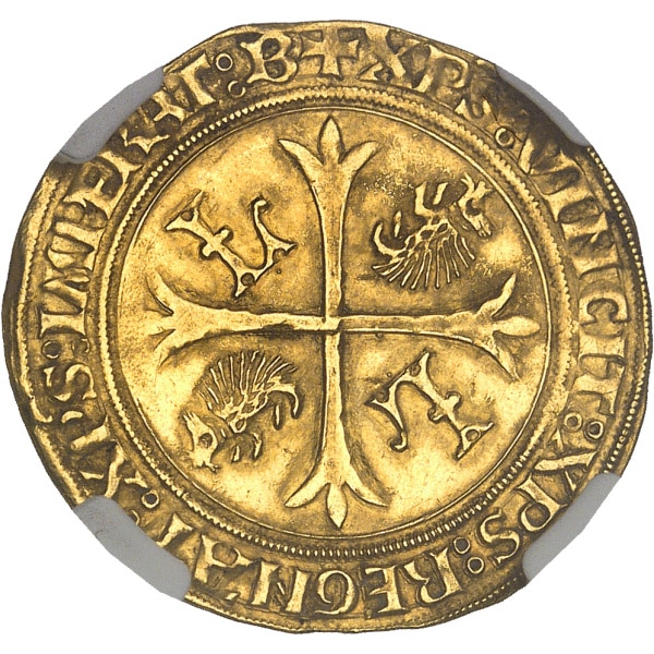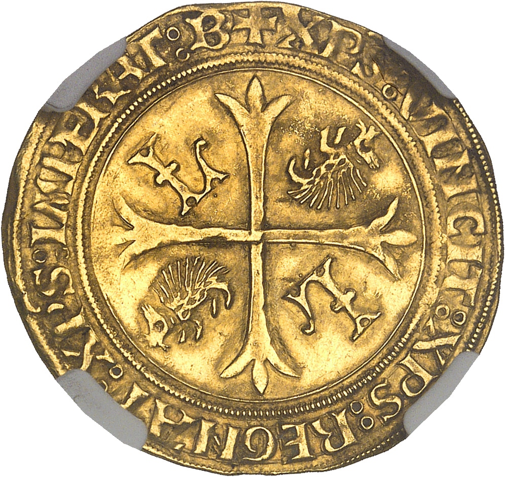 Rv. + XPS: VINCIT: XPS: REGNAT: XPS: IMPERAT: (atelier). Croix achée, cantonnée de deux L onciales et de deux porcs-épics.