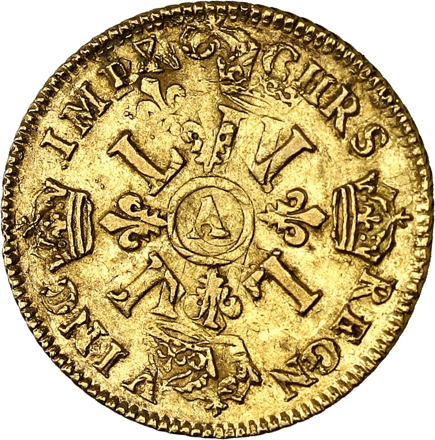 - FRANCE / ROYAL Louis XIV (1643-1715). Louis d’or aux quatre L 1693, A, Paris.