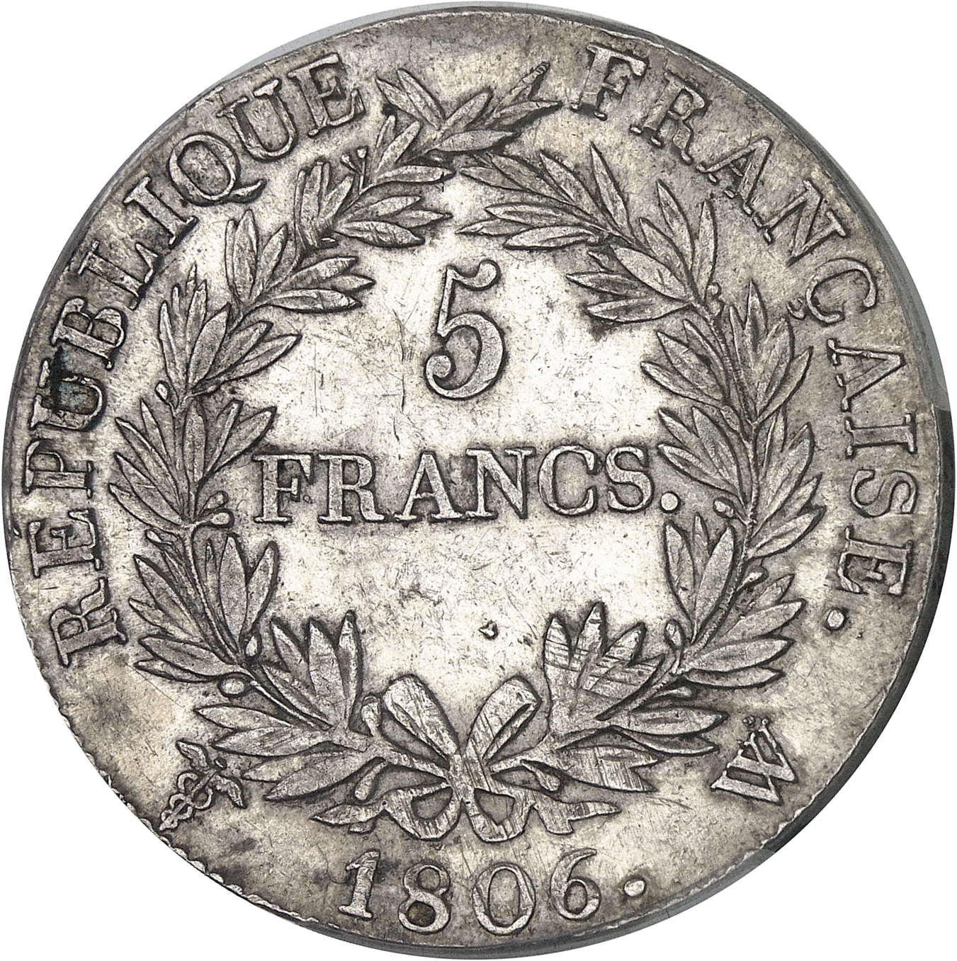 - Premier Empire / Napoléon Ier (1804-1814). 5 francs Empereur, calendrier grégorien 1806, W, Lille.