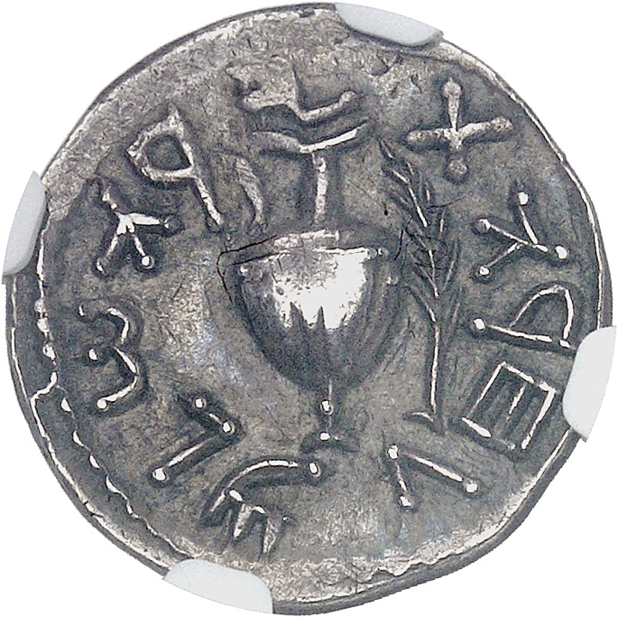 Av. Légende hébraïque "Shimon". Grappe de raisin, le tout dans un grènetis.