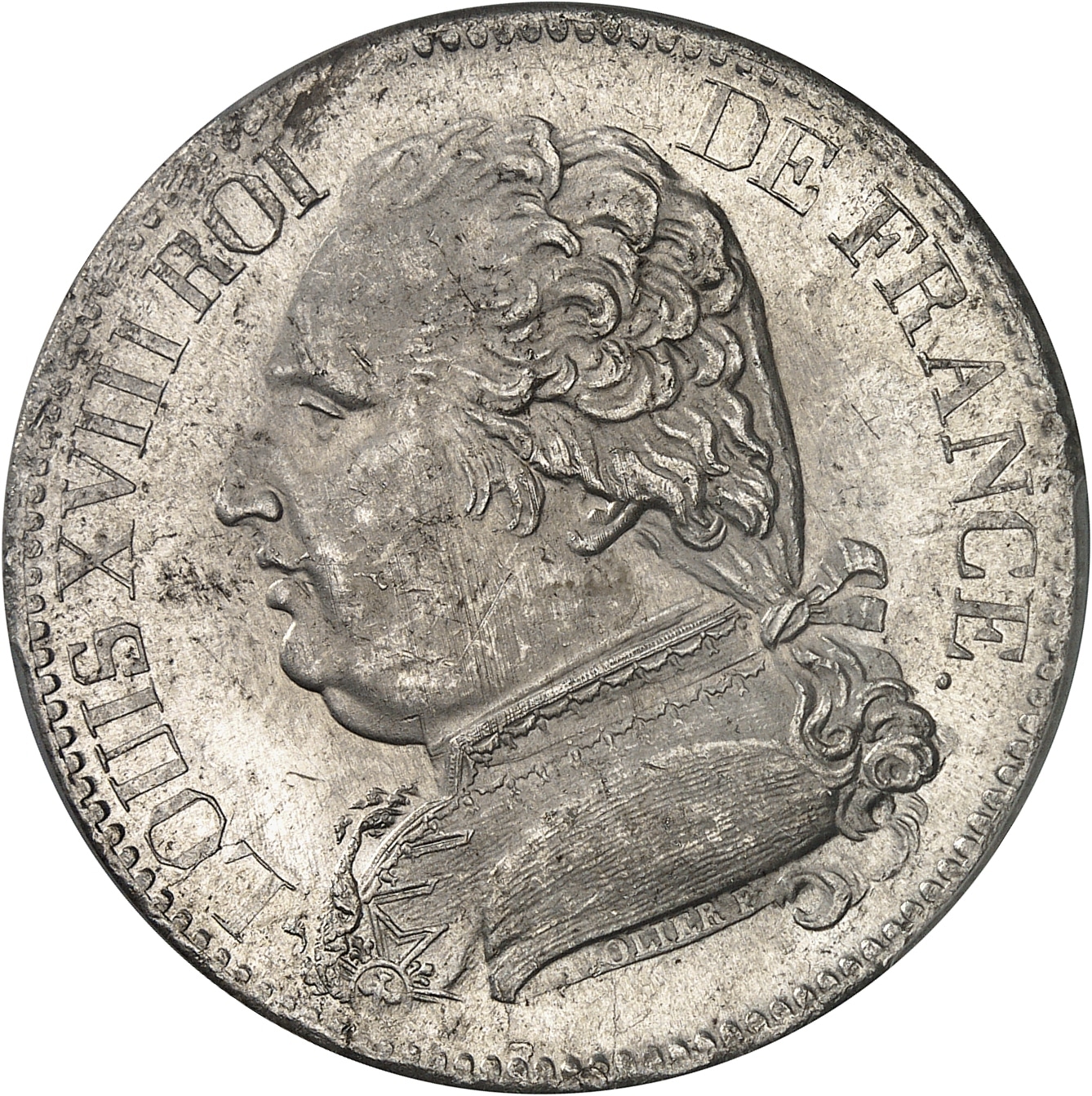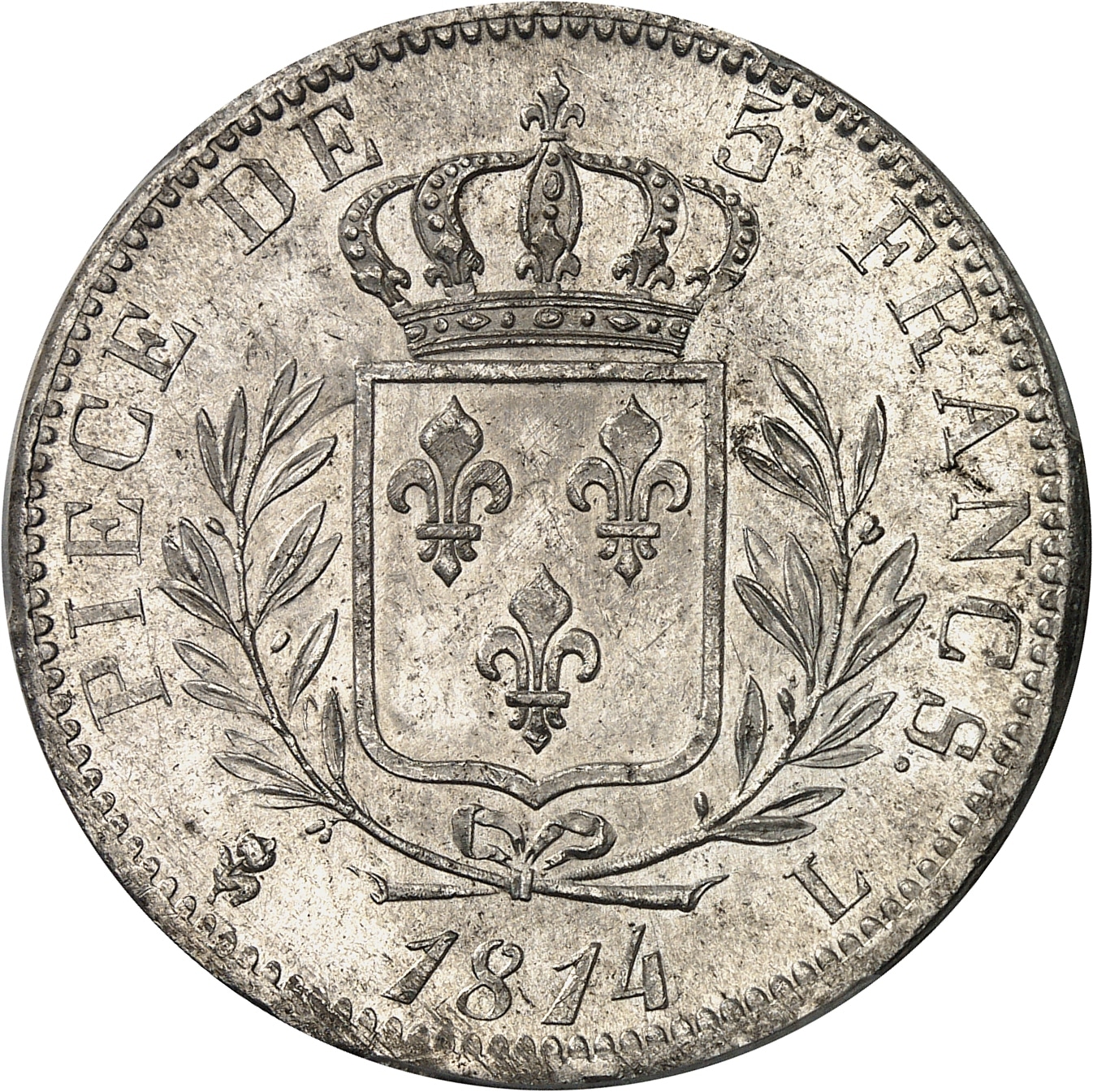 - Louis XVIII (1814-1824). 5 francs buste habillé 1814, L, Bayonne.