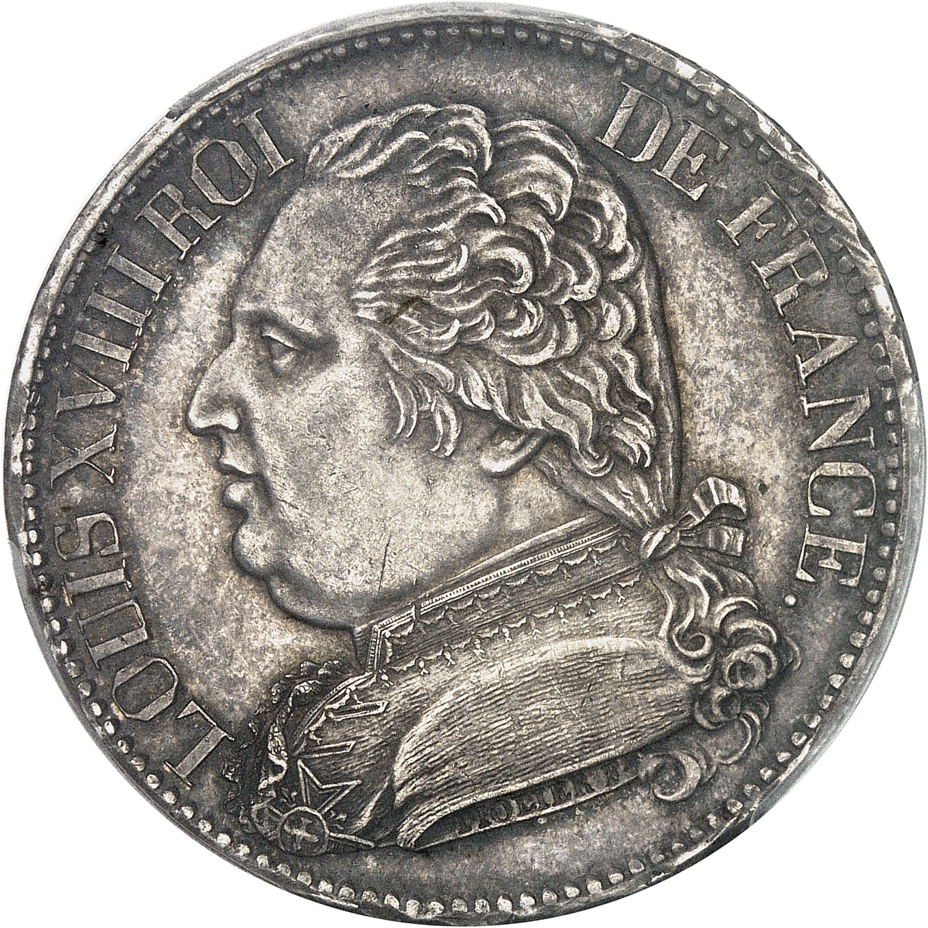 Av. LOUIS XVIII ROI - DE FRANCE. Buste habillé de Louis XVIII à gauche, au-dessous signature TIOLIER F.