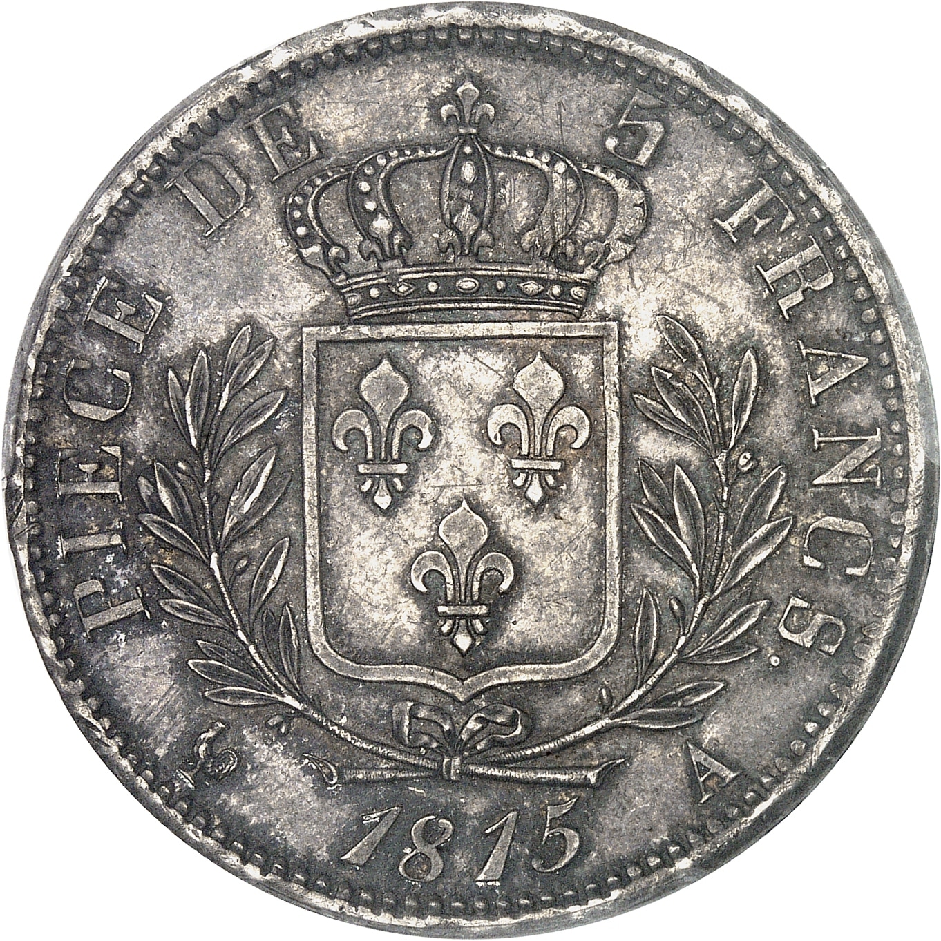 - Louis XVIII (1814-1824). 5 francs buste habillé 1815, A, Paris.