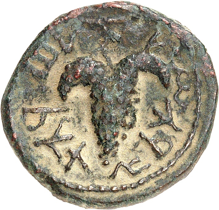 Rv. Légende hébraïque “Pour la liberté d’Israël”. Grappe de raisin.