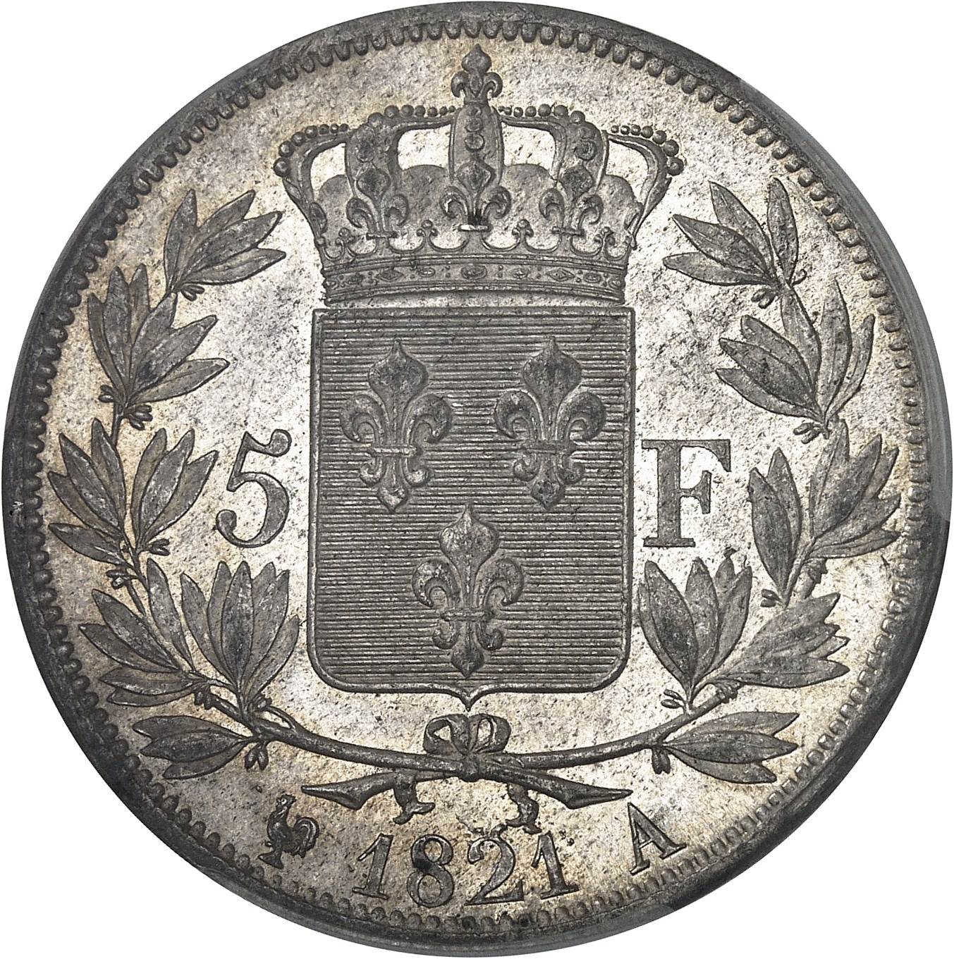 - Louis XVIII (1814-1824). 5 francs buste nu 1821, A, Paris.
